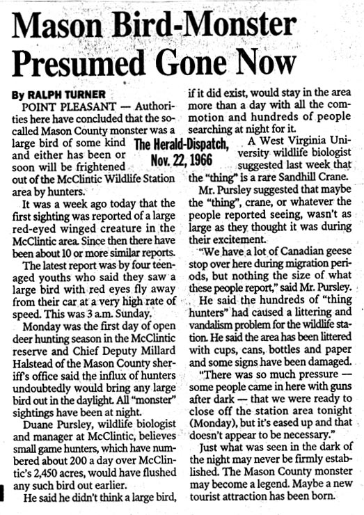 NEWSPAPER SOURCE: http://www.wvculture.org/history/notewv/mothman.html